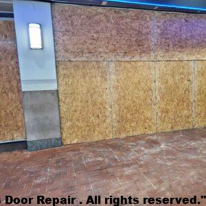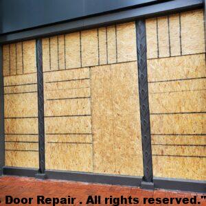 Such board up is needed when we have custom size glass door or a double pane glass.  A herculite frame less glass door is a good example as it will take few days for the glass to be ready. We can not leave it like that too