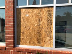 Our crew will come and will clean up the glass and the debris. They will secure the window with a professional board up. That is a professional board up where we don’t put screws into the frame. The board up made of plywood will be cut and made to the glass size. That plywood will be put instead of the glass